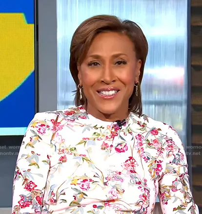 Robin Roberts on Good Morning America on ABC was spotted wearing this white floral long sleeve dress on Good Morning America on Mar 03 2022's episode. Robin's Dress is the Floral & Leopard Jersey Dress by Brandon Maxwell.