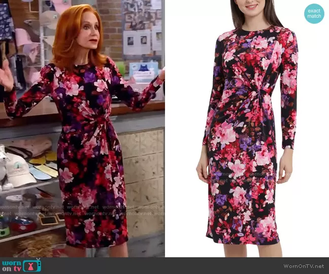 Sheila (played by Swoosie Kurtz) on Call Me Kat on Fox was spotted wearing this floral twist front dress on Call Me Kat on episode 'Call Me Irresponsible' (2x09) in Mar 2022. Sheila's Dress is the Floral Front Twist Long Sleeve Midi Dress by Maggy London.