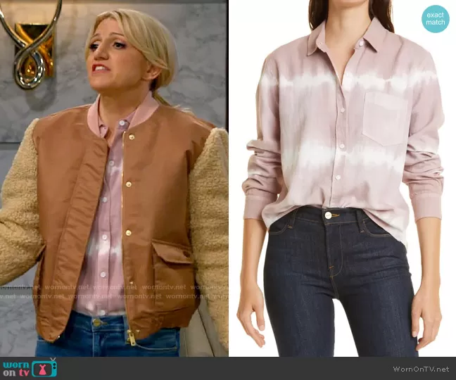 Gina Dabrowski (played by Annaleigh Ashford) on B Positive on CBS was spotted wearing this furry sleeve bomber jacket on B Positive on episode 'Payroll, a Waterwall and Valley Forge' (2x15) in Mar 2022. Gina's Top is the Ingrid Shirt in Mauve White Waves by Rails . Gina's Jacket is the Teddy Sleeve Bomber Jacket by Scotch & Soda . Gina's Shoes is the Hi Star Platform Sneakers by Golden Goose.
