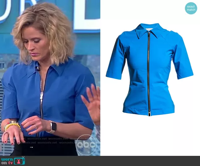Sara Haines on The View on ABC was spotted wearing this zip front top on The View on Mar 04 2022's episode. Sara's Top is the Neoprene Zip-Front Top by Nina Ricci.