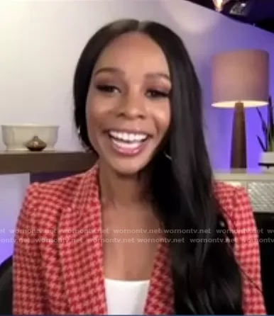 Chamberlain Houndstooth Blazer by L'Agence worn by Zuri Hall on Access Hollywood