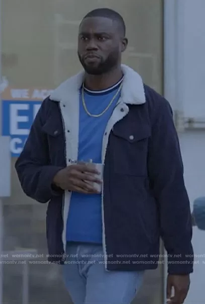 James (played by Garrick Bernard) on Single Drunk Female on Freeform was spotted wearing this navy sherpa lined jacket on Single Drunk Female on episode 'James' (1x08) in Mar 2022. James's Jacket is the Corduroy Sherpa Trucker Jacket by Levis.