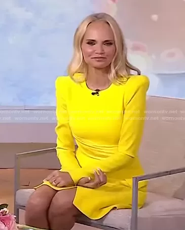 on Today on NBC was spotted wearing this yellow long sleeve mini dress on Today on Mar 07 2022's episode. 's Dress is the Rae Draped Mini Dress by Alex Perry.