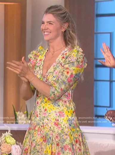 Floral print v-neck dress by LoveShackFancy worn by Amanda Kloots on The Talk