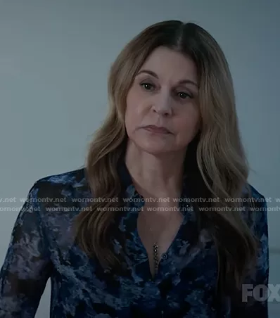 Kit Voss (played by Jane Leeves) on The Resident on Fox was spotted wearing this black and blue abstract print blouse on The Resident on episode 'In for a Penny' (5x15) in Mar 2022. Kit's Top is the Chika Printed Blouse by Altuzarra.