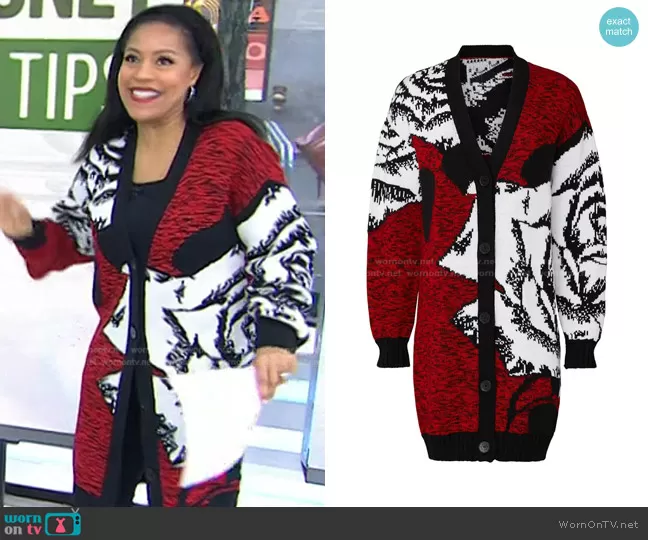 Sheinelle Jones on Today on NBC was spotted wearing this rose print cardigan on Today on Mar 09 2022's episode. Sheinelle's Sweater is the Maglia Rose Cardigan by MSGM.