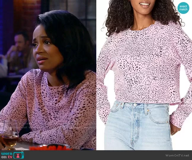 Monrow Mini Cheetah Cutoff Boyfriend Sweatshirt worn by Randi (Kyla Pratt) on Call Me Kat