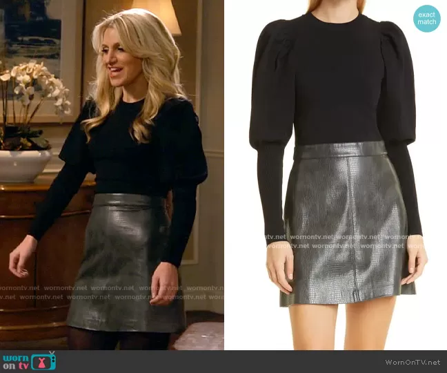 Gina Dabrowski (played by Annaleigh Ashford) on B Positive on CBS was spotted wearing this black puff sleeve top and leather skirt dress on B Positive on episode 'Juneau, Froyo, and Mario Kart' (2x16) in Mar 2022. Gina's Dress is the Vienn Dress by Ted Baker.