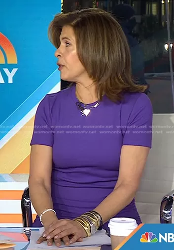 Hoda Kotb on Today on NBC was spotted wearing this purple ruched waist dress on Today on Mar 14 2022's episode. Hoda's Dress is the Ruched Rib Dress by Zara.