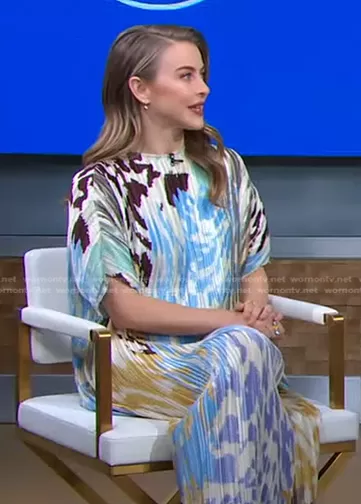 Avalyn Pleated Cheetah-Print Dress by Stine Goya worn by Julianne Hough on GMA