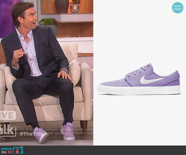 Jerry O'Connell on The Talk on CBS was spotted wearing this purple sneakers on The Talk on Mar 14 2022's episode. Jerry's Shoes is the Zoom Stefan Janoski Shoes by Nike.