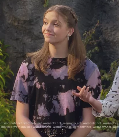 Presley (played by Jayden Bartels) on Side Hustle on Nickeldeon was spotted wearing this purple tie dye tee on Side Hustle on episode 'Clownderella' (2x09) in Mar 2022. Presley's Top is the Tokyo Crop Tee by Cotton Citizen.