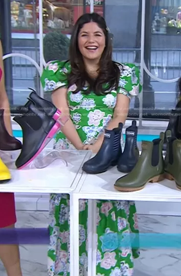 Adrianna Barrionuevo Brach on Today on NBC was spotted wearing this green floral puff sleeve dress on Today on Apr 12 2023's episode. Adrianna's Dress is the Danielle Floral Print Puff Sleeve Dress by Tanya Taylor.