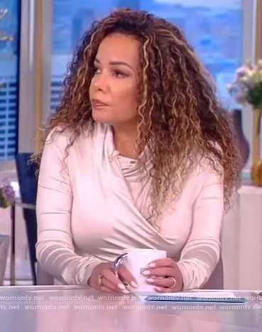 Sunny Hostin on The View on ABC was spotted wearing this leather drape top and skirt on The View on Mar 16 2022's episode. Sunny's Top is the Magnetic draped coated stretch-jersey top by Rick Owens . Sunny's Skirt is the Vered asymmetric draped stretch-jersey skirt by Rick Owens.