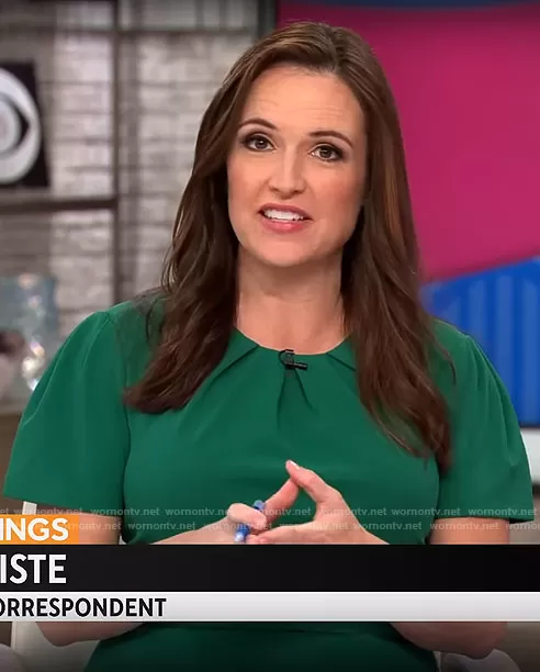 Nikki Battiste on CBS Mornings on CBS was spotted wearing this green short sleeve dress on CBS Mornings on Apr 03 2023's episode. Nikki's Dress is the Pleated Neck Short Sleeve Sheath Dress in Green Crush by Maggy London .