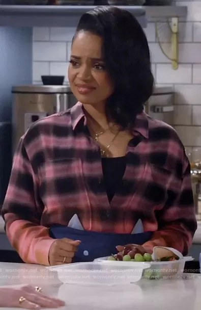 Randi (played by Kyla Pratt) on Call Me Kat on Fox was spotted wearing this pink ombre plaid shirt on Call Me Kat on episode 'Call Me the Bad Boy of Cheese' (2x11) in Mar 2022. Randi's Top is the Tierra Shirt in Pink Orange Dip Dye by Rails.