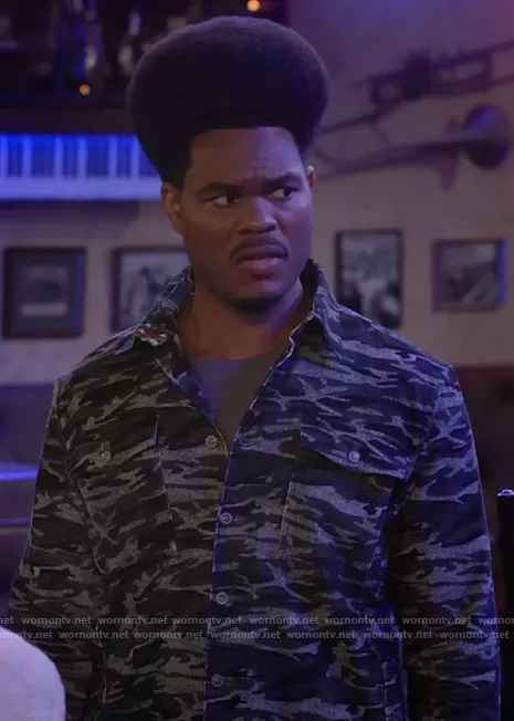 Carter (played by Julian Gant) on Call Me Kat on Fox was spotted wearing this camo button down shirt on Call Me Kat on episode 'Call Me the Bad Boy of Cheese' (2x11) in Mar 2022. Carter's Shirt is the Lacombe Shirt by Robert Graham.