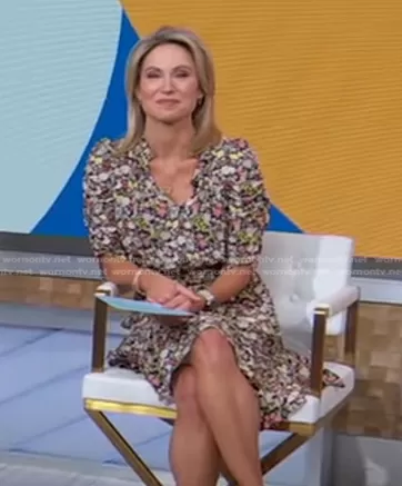 Amy Robach on Good Morning America on ABC was spotted wearing this floral print mini dress on Good Morning America on Mar 18 2022's episode. Amy's Dress is the Rena Dress by Shoshanna.