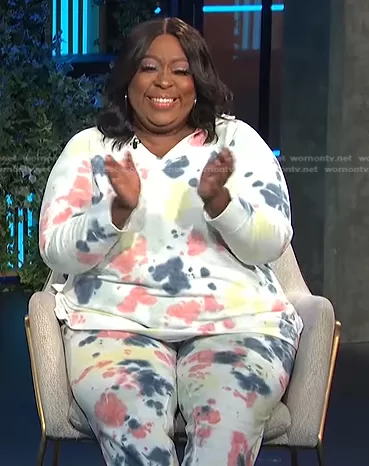 Loni Love on E! News on E! was spotted wearing this tie dye sweatshirt and jogger pants on E! News Daily Pop on Mar 18 2022's episode. Loni's Sweater is the LIVI V-Neck Hoodie by Lane Bryant . Loni's Pants is the LIVI French Terry Jogger by Lane Bryant.