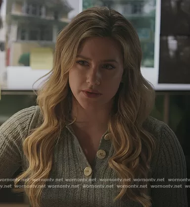 Betty Cooper (played by Lili Reinhart) on Riverdale on The CW was spotted wearing this blue ribbed sweater on Riverdale on episode 'Unbelievable' (6x06) in Mar 2022. Betty's Sweater is the Linen Knit Sweater by Ganni.