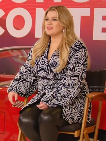 on Today on NBC was spotted wearing this black embellished star wrap dress on Today on Mar 21 2022's episode. 's Robe is the Pearl Star Gabrielle Robe by Retrofete.