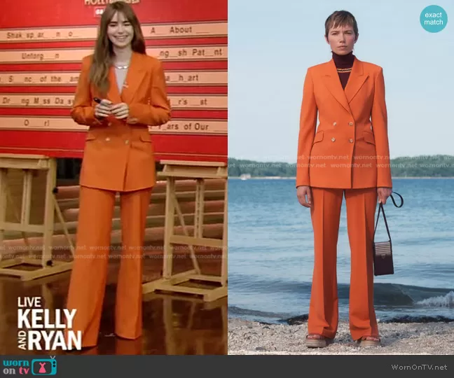 on Live with Kelly and Mark on Disney ABC Home Entertainment was spotted wearing this orange blazer and pants on Live with Kelly and Ryan on Mar 23 2022's episode. 's Suit is the Resort 2022 Collection by Gabriela Hearst.