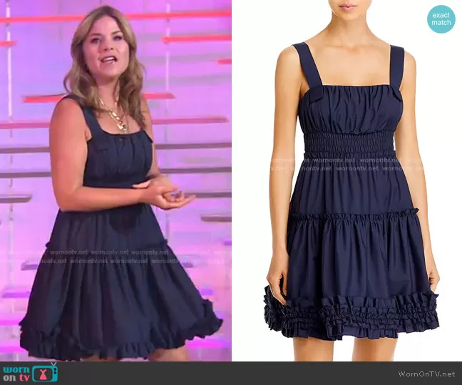 Jenna Bush Hager on Today on NBC was spotted wearing this navy ruffled mini dress on Today on Mar 23 2022's episode. Jenna's Dress is the Ruffled Dress by Jason Wu.