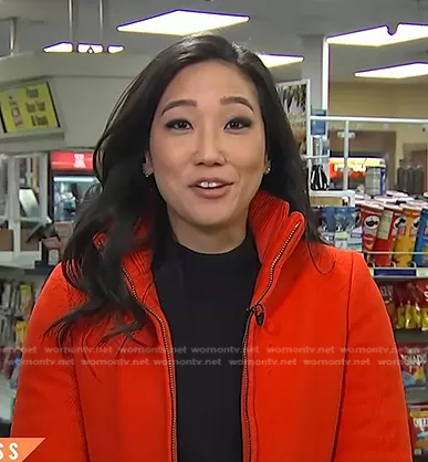 on Today on NBC was spotted wearing this red zip front jacket coat on Today on Jan 16 2023's episode. 's Coat is the Lodge Coat in Italian Stadium by J. Crew.