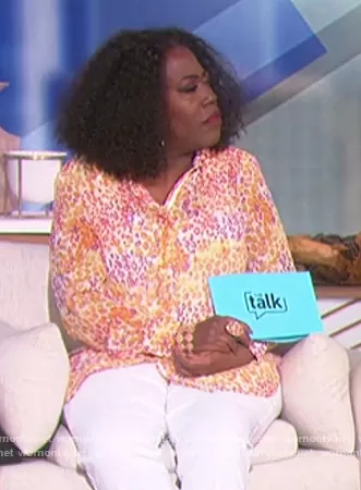 Sheryl Underwood on The Talk on CBS was spotted wearing this floral print blouse on The Talk on Mar 24 2022's episode. Sheryl's Top is the Floral Print Blouse by Chicos.