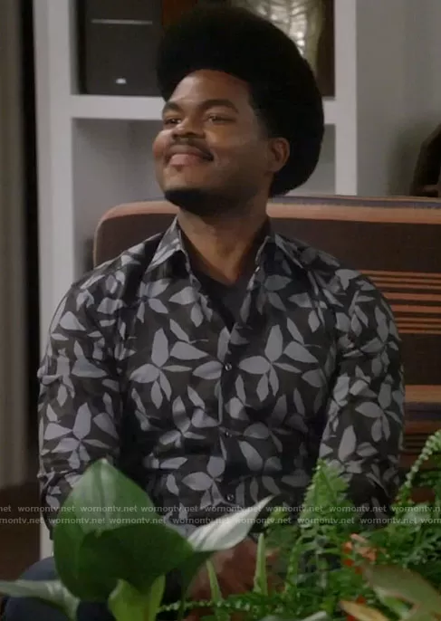 Carter (played by Julian Gant) on Call Me Kat on Fox was spotted wearing this leaf print shirt on Call Me Kat on episode 'Call Me a McCluckhead' (2x12) in Mar 2022. Carter's Shirt is the Hank Leaf Print Shirt by BOSS.