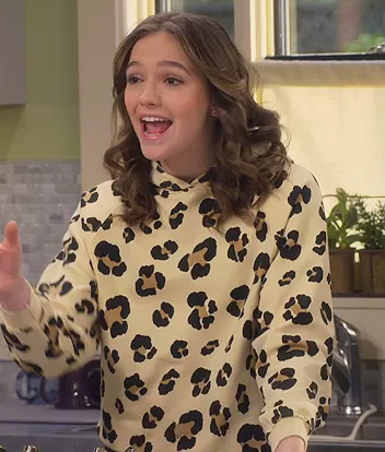 Presley (played by Jayden Bartels) on Side Hustle on Nickeldeon was spotted wearing this leopard hoodie on Side Hustle on episode 'We Have a Bingo!' (2x10) in Mar 2022. Presley's Sweater is the Animal Print Hoodie by Zara.