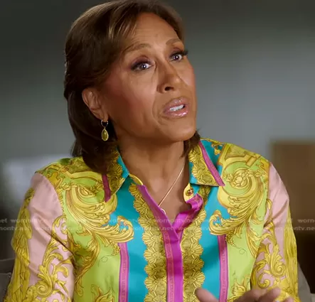 Heritage Print Silk Shirt by Versace worn by Robin Roberts on Good Morning America