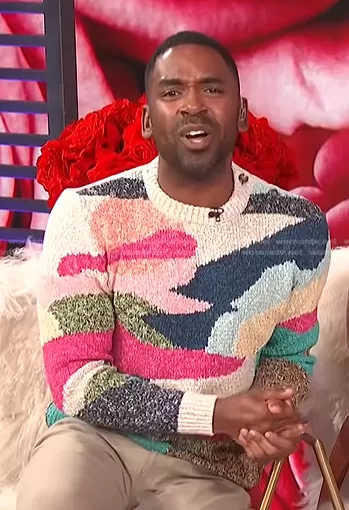Justin Sylvester on E! News on E! was spotted wearing this multicolor print sweater on E! News Daily Pop on Mar 15 2022's episode. Justin's Sweater is the Melange crewneck sweater by Scotch and Soda.