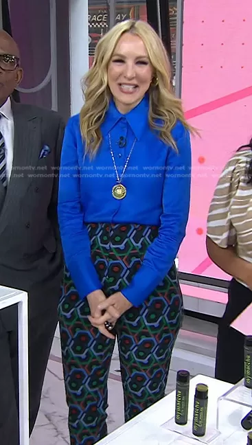 Chassie Post on Today on NBC was spotted wearing this Chassie’s blue shirt and geometric pants on Today on Mar 31 2022's episode. Chassie's Top is the Satin Effect Shirt by Zara
