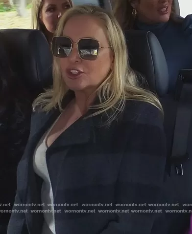 Shannon Beador on The Real Housewives of Orange County on Bravo was spotted wearing this gray striped coat on The Real Housewives of Orange County on episode 'When in Aspen...' (16x15) in Mar 2022. Shannon's Coat is the Buffalo Plaid Wool Coat by Theory.