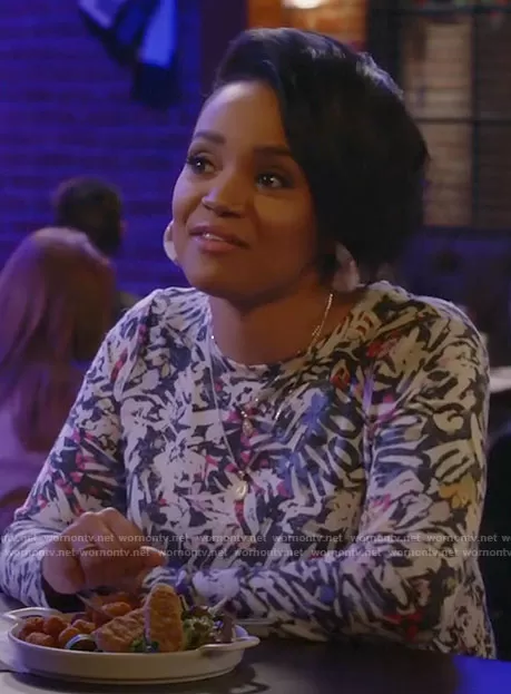 Randi (played by Kyla Pratt) on Call Me Kat on Fox was spotted wearing this scribble print top on Call Me Kat on episode 'Call Me a Kingbirdie' (2x13) in Mar 2022. Randi's Top is the Doodle Camo Long-Sleeve Tee by Nic + Zoe.