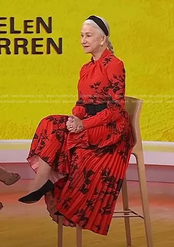 on Today on NBC was spotted wearing this red floral blouse and pleated skirt on Today on Apr 05 2022's episode. 's Top is the Fayola Floral Print Silk Crepe de Chine Blouse by Erdem . 's Skirt is the Nesrine Rose-Print Pleated Skirt by Erdem.