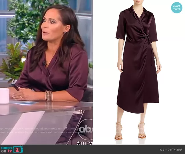 on The View on ABC was spotted wearing this purple satin wrap dress on The View on Apr 06 2022's episode. 's Dress is the Dasatine Satin Wrap Dress by BOSS.