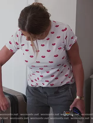 Dolores Catania on The Real Housewives of New Jersey on Bravo was spotted wearing this white lip print tee on The Real Housewives of New Jersey on episode 'Nightmare in Nashvegas' (12x11) in Apr 2022. Dolores's Top is the Lip Print Tee by French Connection.