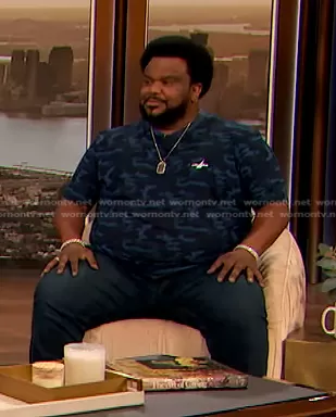 Short Sleeve Camo Print Tee by Nautica worn by Craig Robinson The Drew Barrymore Show