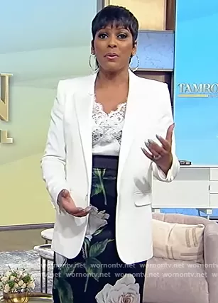 Tamron Hall on Tamron Hall Show on ABC was spotted wearing this black floral print skirt on Tamron Hall Show on Apr 19 2022's episode. Tamron's Skirt is the Floral silk-blend satin pencil skirt by Dolce & Gabbana.