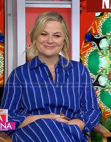 on Today on NBC was spotted wearing this blue striped shirtdress on Today on Apr 20 2022's episode. 's Dress is the Waylon Harbor Stripe Shirtdress by Lafayette 148 New York.