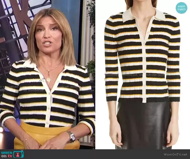 Hudson Stripe Cardigan by Theory worn by Kit Hoover on Access Hollywood