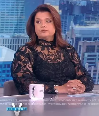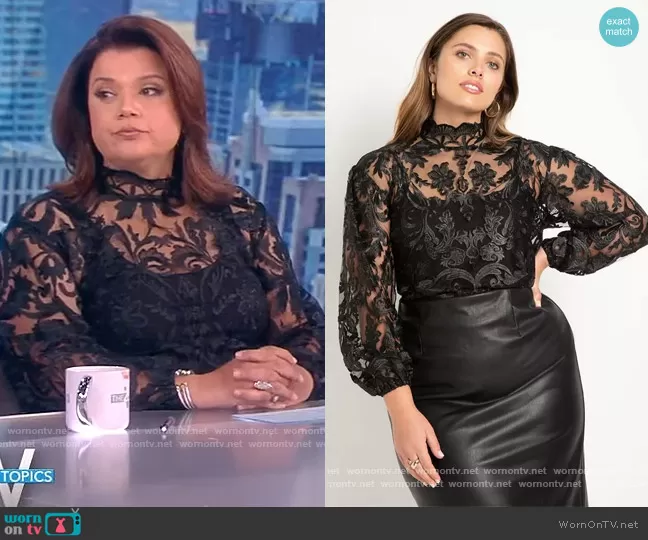 Ana Navarro on The View on ABC was spotted wearing this black lace top on The View on Apr 25 2022's episode. Ana's Top is the Lace Top by Eloquii.