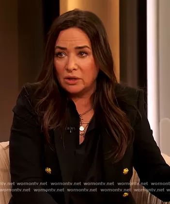 on The Drew Barrymore Show on CBS was spotted wearing this black double breasted blazer on The Drew Barrymore Show on Apr 25 2022's episode. 's Blazer is the Empire Double-Breasted Blazer by Veronica Beard.