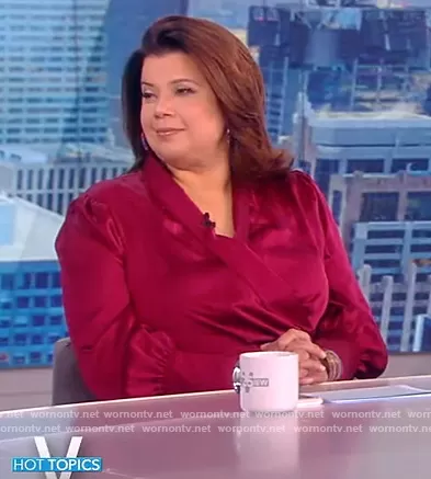 Ana Navarro on The View on ABC was spotted wearing this red satin wrap dress on The View on Apr 26 2022's episode. Ana's Dress is the Mini Satin Wrap Dress by Eloquii.