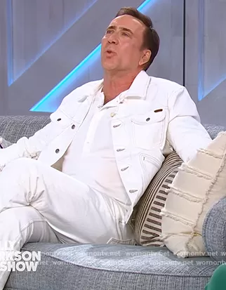 White Denim Selvedge Jacket by Tom Ford worn by Nicolas Cage on The Kelly Clarkson Show