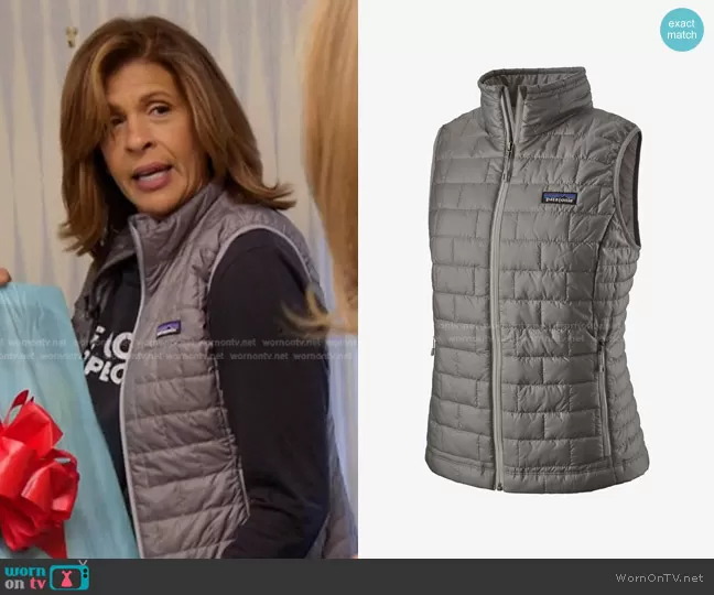 Hoda Kotb on Today on NBC was spotted wearing this grey padded vest on Today on Apr 26 2022's episode. Hoda's Vest is the Nano Puff Insulated Vest by Patagonia.
