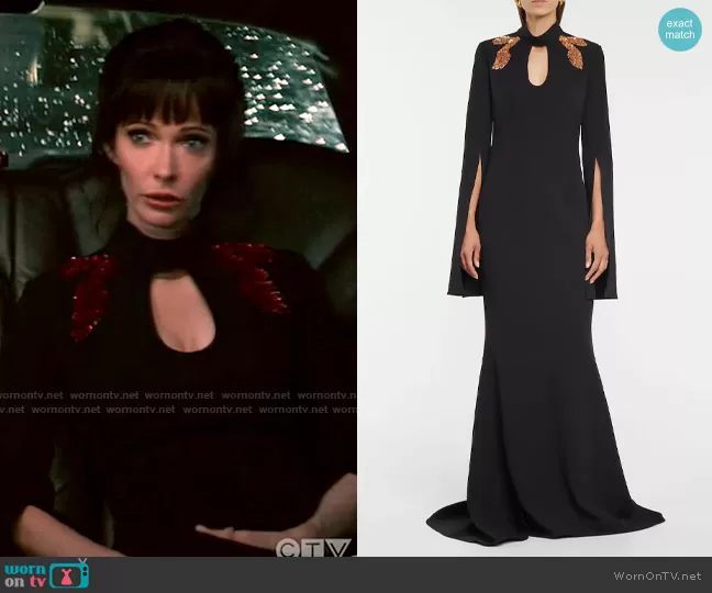 Lois Lane (played by Elizabeth Tulloch) on Superman and Lois on The CW was spotted wearing this black keyhole cutout gown with beading on Superman and Lois on episode 'Bizarros in a Bizarro World' (2x10) in Apr 2022. Lois's Dress is the Anouk Gown by Safiyaa.