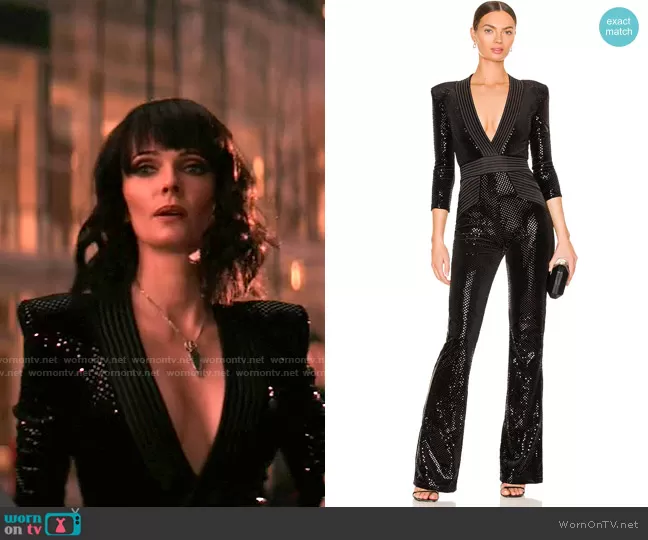 Lois Lane (played by Elizabeth Tulloch) on Superman and Lois on The CW was spotted wearing this black sequin v-neck jumpsuit on Superman and Lois on episode 'Bizarros in a Bizarro World' (2x10) in Apr 2022. Lois's Jumpsuit is the Eye of Horus Gilded Jumpsuit by Zhivago.